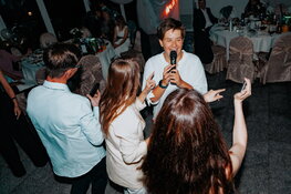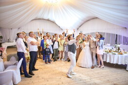 Если Вы не хотите ломать голову над тем, как развлекать многочисленных гостей во время банкета, то Вам необходим профессиональный тамада на свадьбу. Такой человек способен развеселить любую публику! На нашем портале представлены портфолио свадебных ведущих Вашего города. Страница каждого ведущего дополнена контактными данными, описанием услуг, фотографиями с проведённых праздников. Также Вы сможете найти отзывы других молодожёнов о работе того или иного свадебного ведущего.